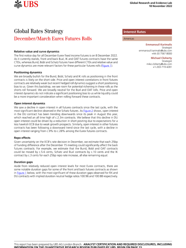 【UBS AG London Branch】【20221118】Global Rates Strategy _DecemberMarch Eurex Futures Rolls_-16页