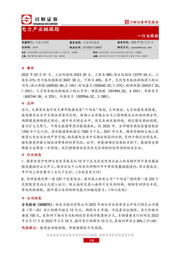 光伏发电 电力产业链 绿色债券 能源发展 行业动态