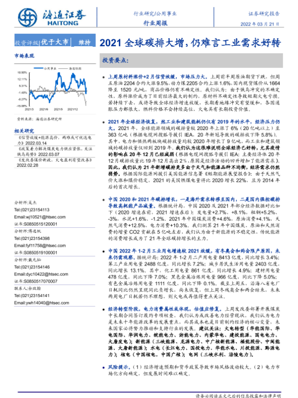 【海通证券】【20220321】2021全球碳排大增,仍难言工业需求好转-2页