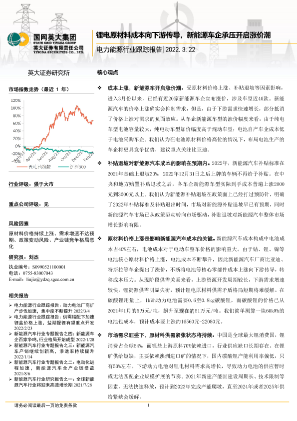 【英大证券】【20220322】电力能源行业跟踪报告:锂电原材料成本向下游传导,新能源车企承压开启涨价潮-6页