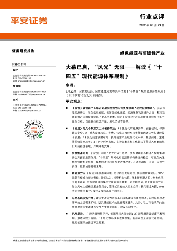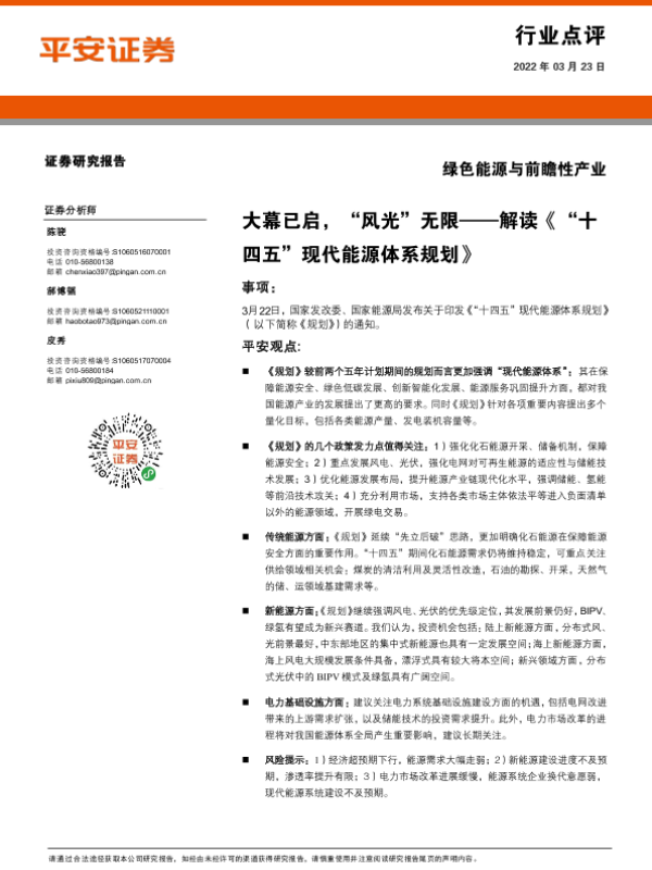 【平安证券】【20220323】绿色能源与前瞻性产业行业点评:大幕已启,“风光”无限——解读《“十四五”现代能源体系规划》-5页
