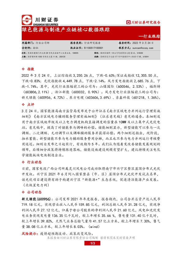 【川财证券】【20220324】绿色能源与制造产业链核心数据跟踪-3页