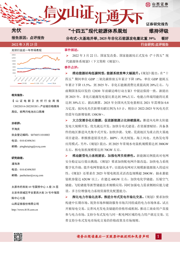 【山西证券】【20220323】光伏:“十四五”现代能源体系规划-分布式+大基地并举-3页