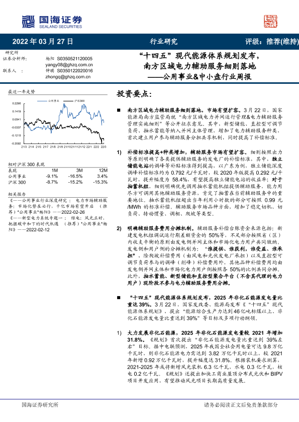 【国海证券】【20220327】‘十四五’现代能源体系规划发布,南方区域电力辅助服务细则落地-18页