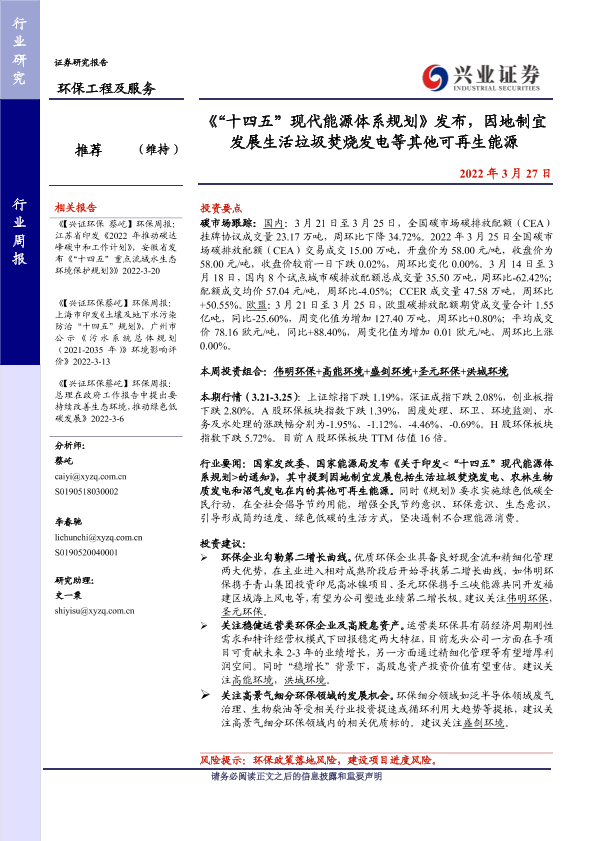 可再生能源 环保工程 现代能源体系 生活垃圾焚烧发电 碳市场跟踪