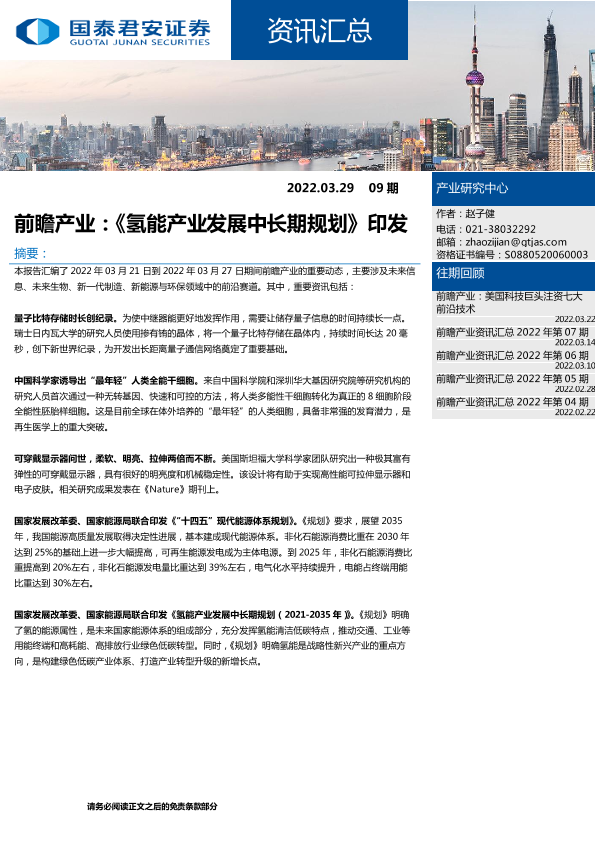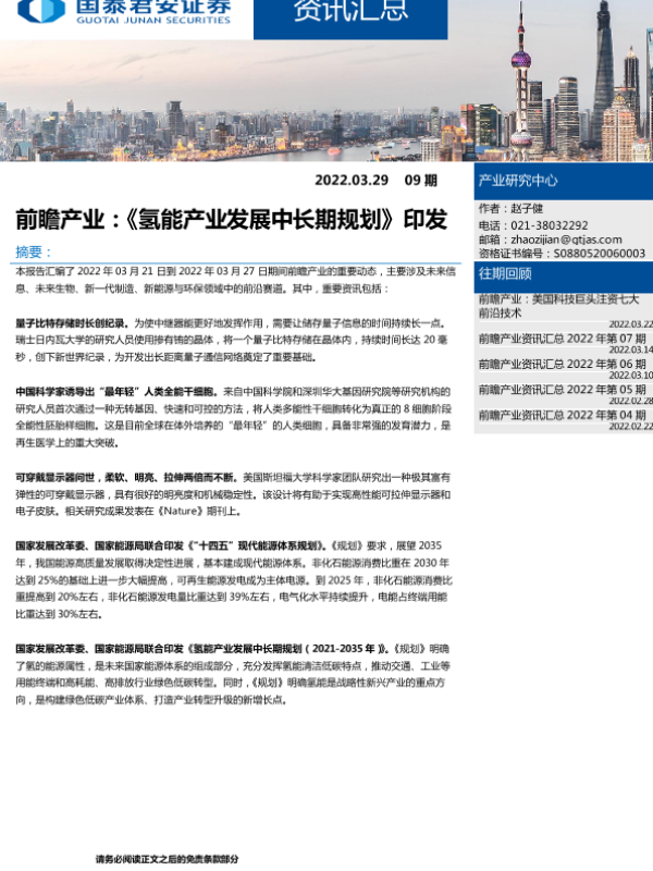 【国泰君安证券】【20220329】氢能产业发展中长期规划印发-8页
