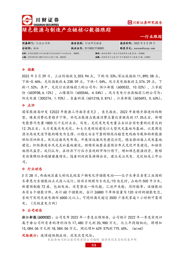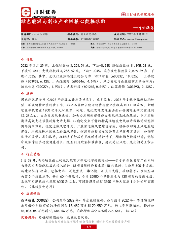 【川财证券】【20220329】绿色能源与制造产业链核心数据跟踪-3页