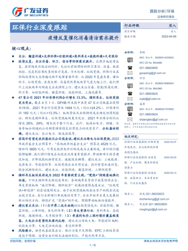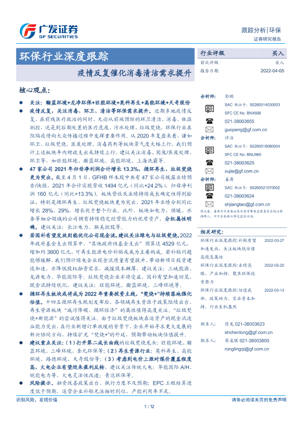 【广发证券】【20220405】环保行业深度跟踪:疫情反复催化消毒清洁需求提升-12页