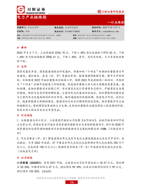 【川财证券】【20220407】电力产业链跟踪-4页