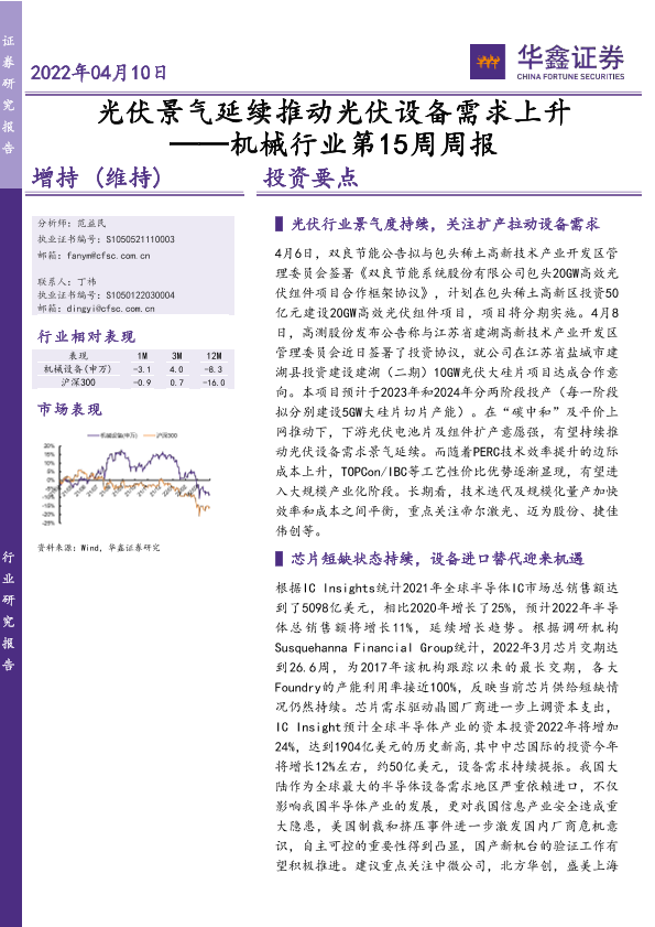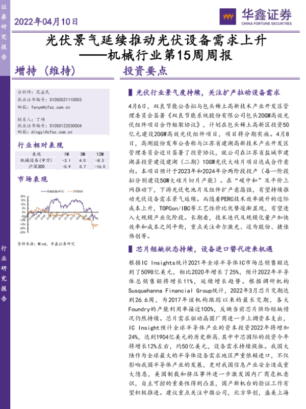 【华鑫证券】【20220410】机械行业第15周周报:光伏景气延续推动光伏设备需求上升-23页