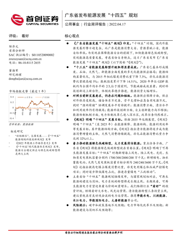 【首创证券】【20220417】广东省发布能源发展'十四五'规划-6页
