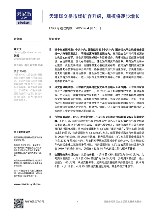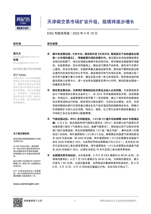 【莫尼塔研究】【20220418】天津碳交易市场扩容升级,规模将逐步增长-8页