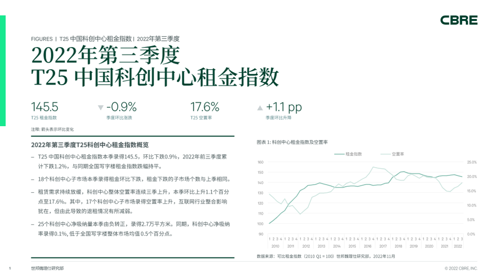 【世邦魏理仕研究部】【20220930】CBRE-T25 中国科创中心租金指数 2022Q3-7页