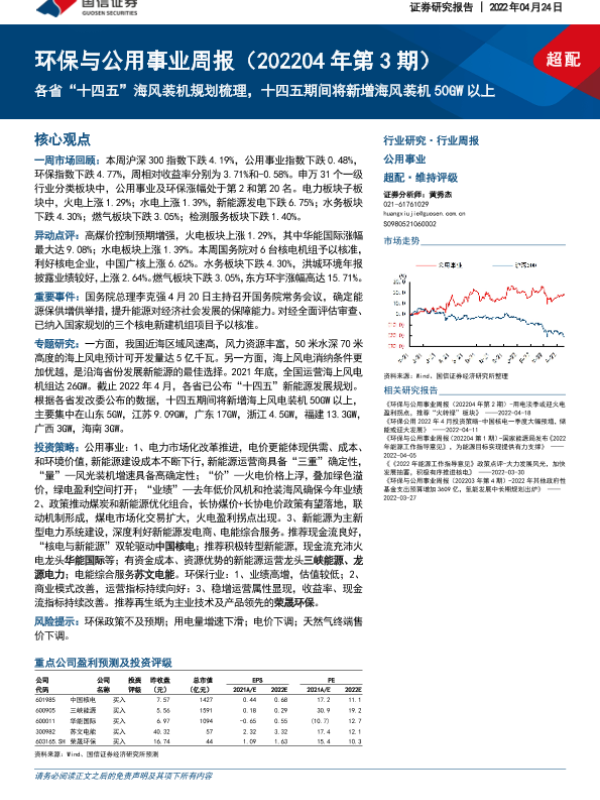 【国信证券】【20220424】各省‘十四五’海风装机规划梳理,十四五期间将新增海风装机50GW以上-30页