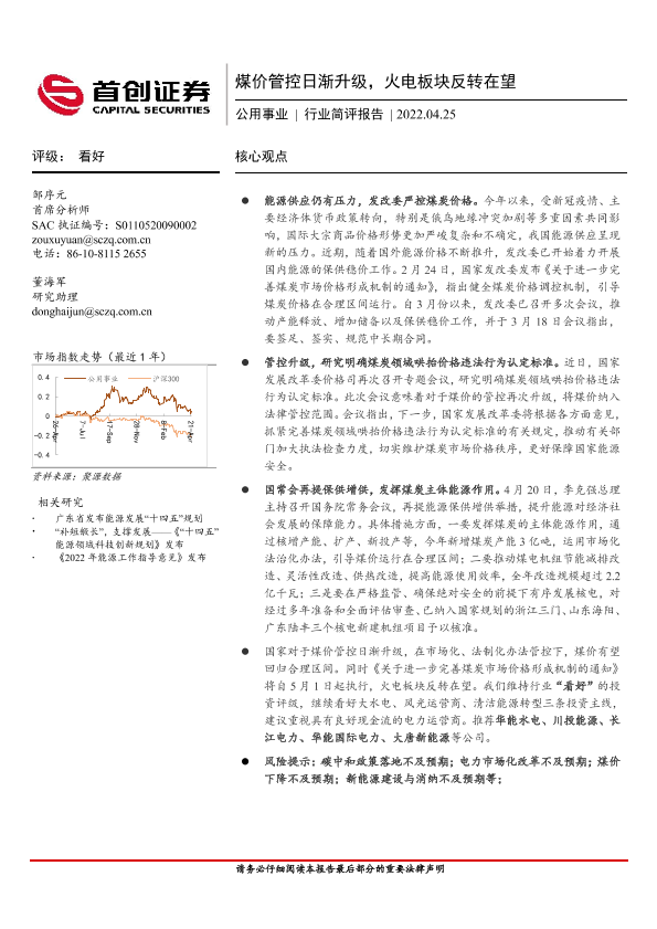【首创证券】【20220425】煤价管控日渐升级,火电板块反转在望-12页