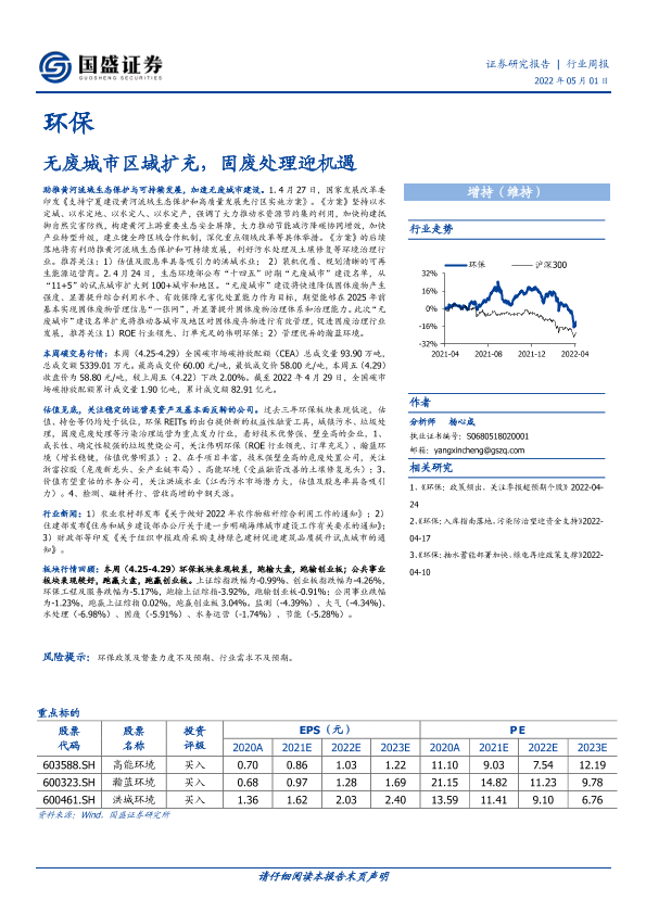 【国盛证券】【20220501】环保行业周报:无废城市区域扩充,固废处理迎机遇-26页