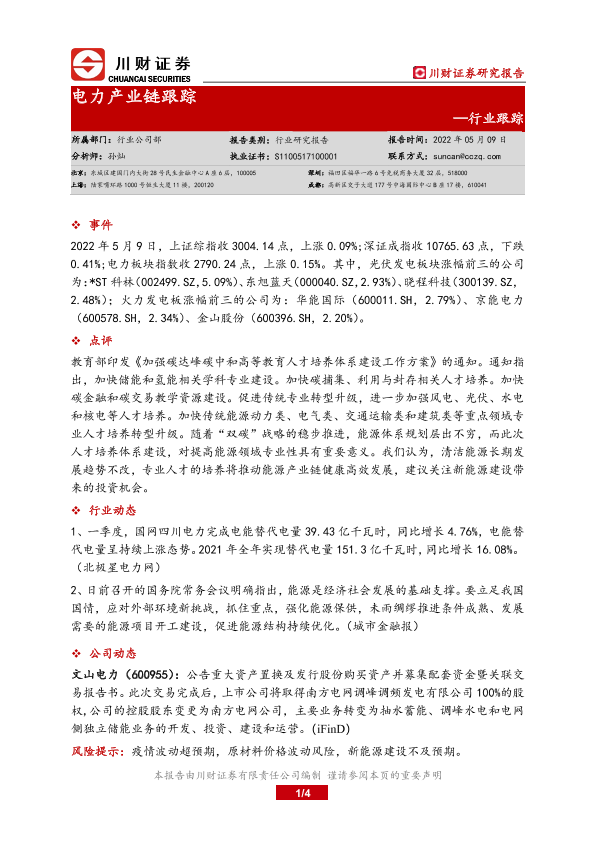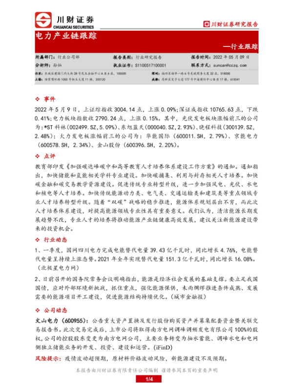【川财证券】【20220509】电力产业链跟踪-4页