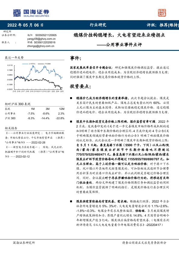 【国海证券】【20220506】稳煤价挂钩稳增长,火电有望迎来业绩拐点-5页