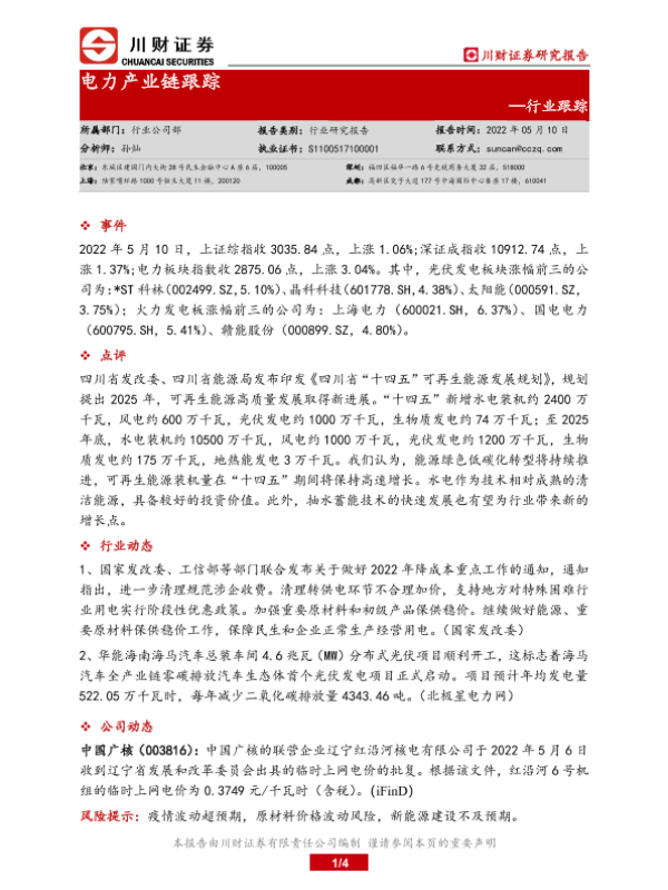 【川财证券】【20220510】电力产业链跟踪-4页