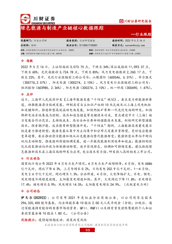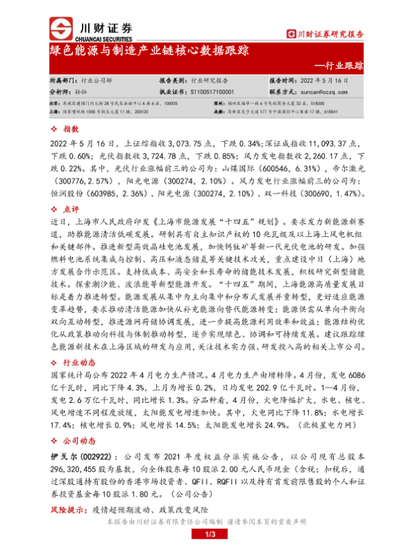 【川财证券】【20220516】绿色能源与制造产业链核心数据跟踪-3页