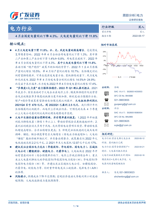 【广发证券】【20220517】4月全国发电量同比下降4.3%,火电发电量同比下滑11.8%-14页