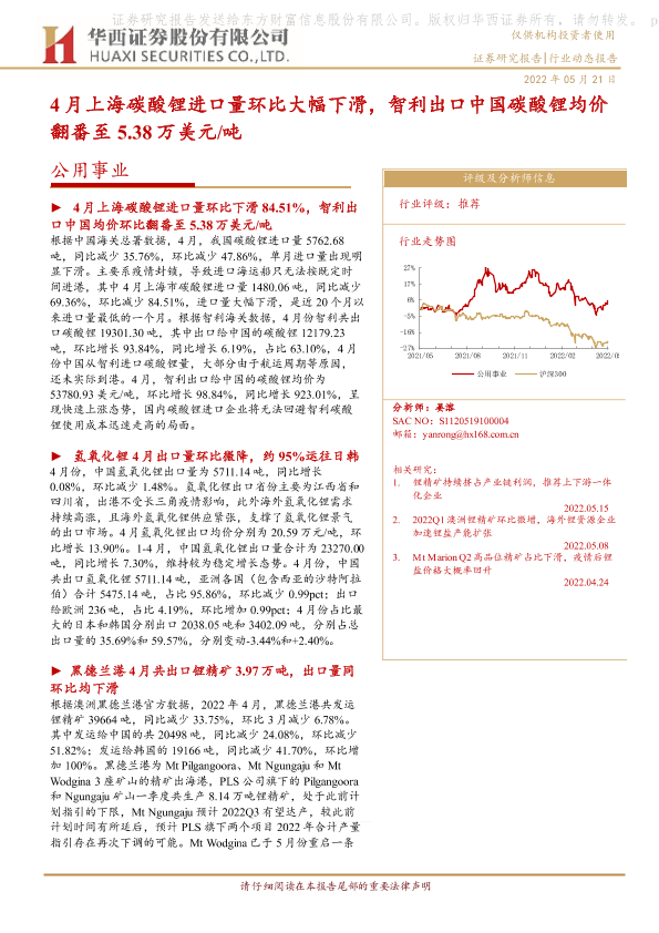 【华西证券】【20220521】4月上海碳酸锂进口量环比大幅下滑,智利出口中国碳酸锂均价翻番至5.38万美元 吨-12页