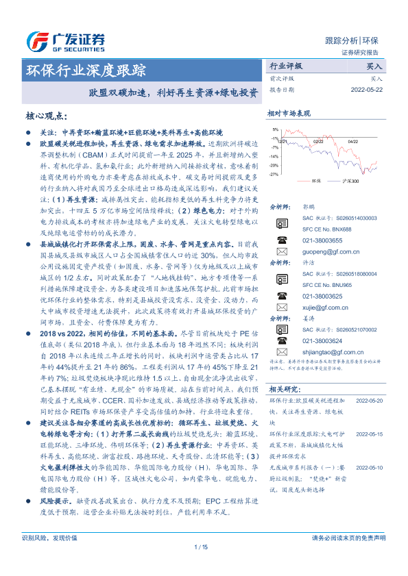 【广发证券】【20220522】环保行业深度跟踪:欧盟双碳加速,利好再生资源+绿电投资-15页