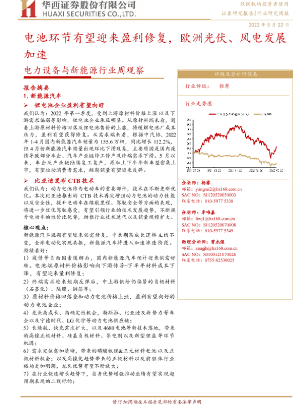 【华西证券】【20220522】电力设备与新能源行业周观察:电池环节有望迎来盈利修复,欧洲光伏、风电发展加速-19页