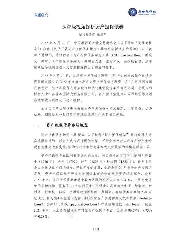 【新世纪评级】【20220526】从评级视角探析资产担保债券-13页