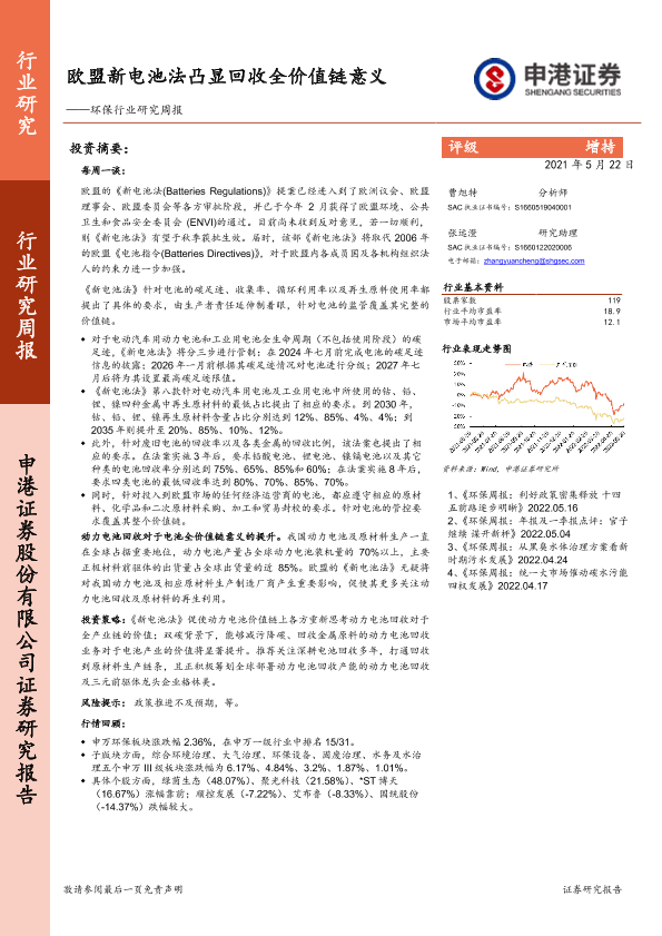 【申港证券】【20220522】欧盟新电池法凸显回收全价值链意义-13页