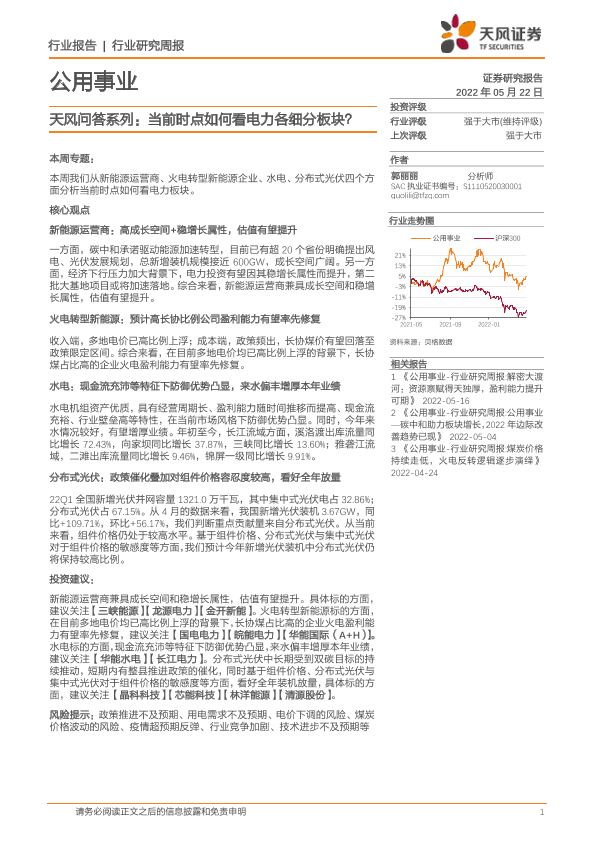 【天风证券】【20220522】当前时点如何看电力各细分板块?-15页