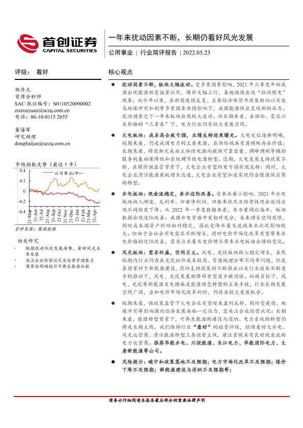 【首创证券】【20220523】一年来扰动因素不断,长期仍看好风光发展-13页