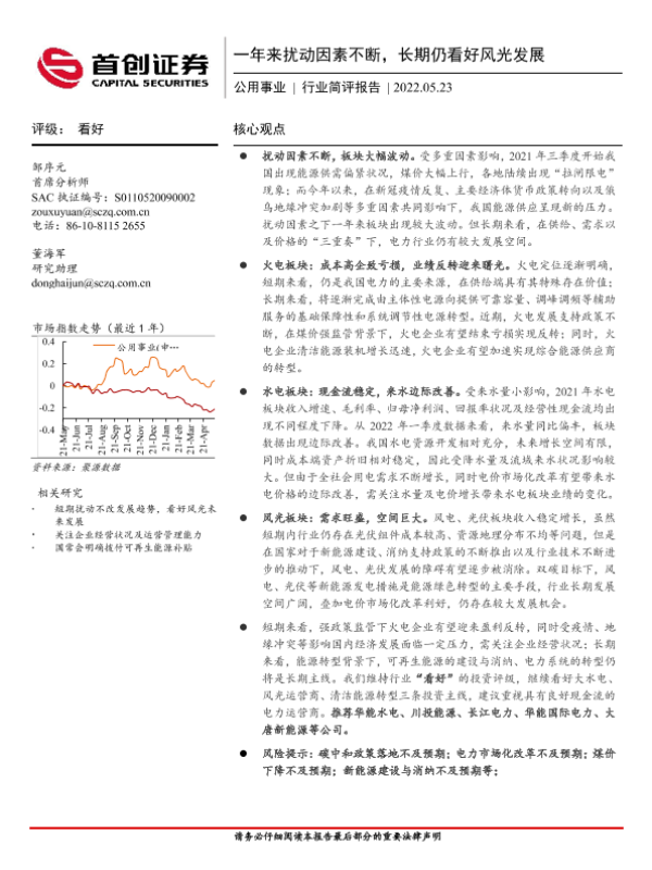 首创证券 电力热力燃气水生产 2022年 PDF 1.15 MB