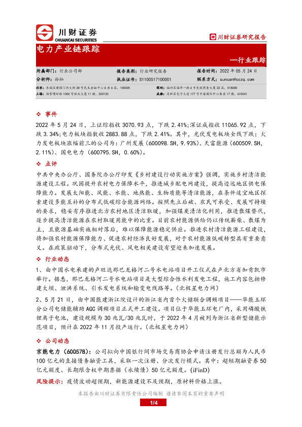 公司融资 市场动态 政策分析 清洁能源 电力产业