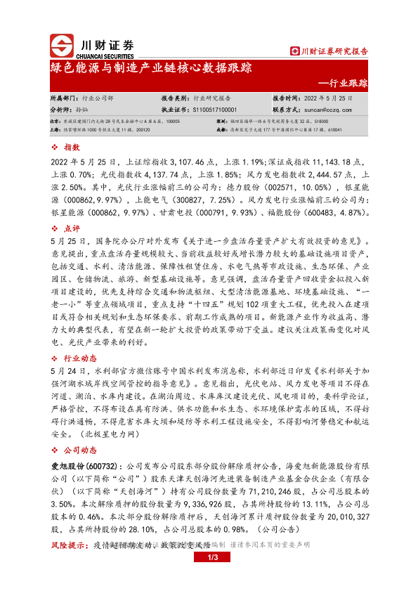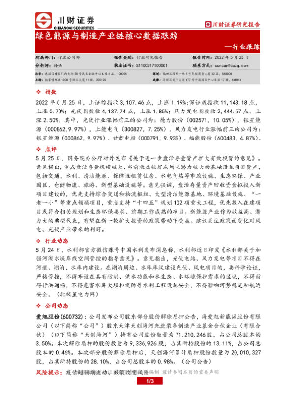 【川财证券】【20220525】绿色能源与制造产业链核心数据跟踪-3页