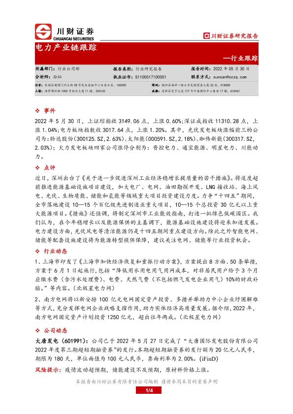 【川财证券】【20220530】电力产业链跟踪-4页