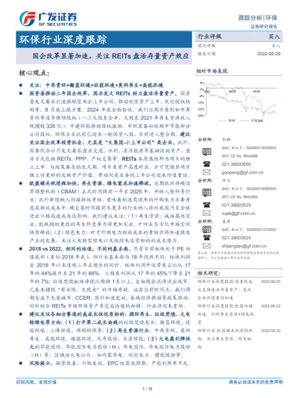 【广发证券】【20220529】环保行业深度跟踪:国企改革显著加速,关注REITs盘活存量资产效应-13页