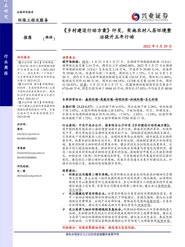 【兴业证券】【20220529】环保工程及服务行业周报:《乡村建设行动方案》印发,实施农村人居环境整治提升五年行动-10页