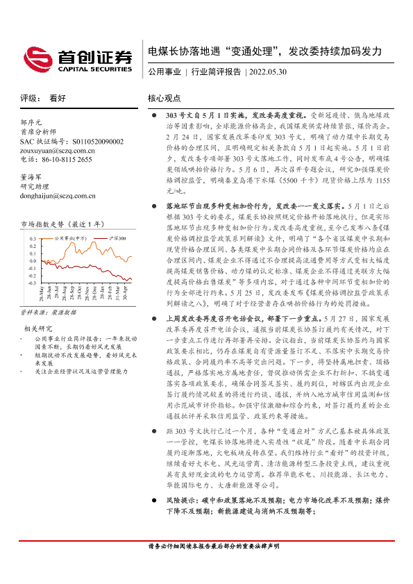 【首创证券】【20220530】电煤长协落地遇“变通处理”,发改委持续加码发力-13页