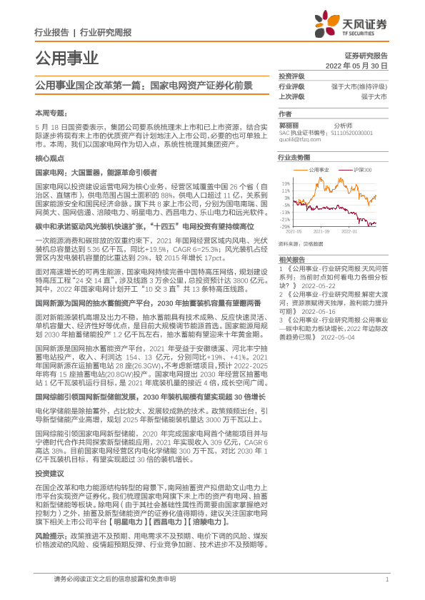 【天风证券】【20220530】公用事业国企改革第一篇:国家电网资产证券化前景-20页