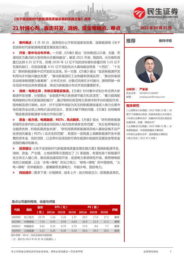 【民生证券】【20220531】关于促进新时代新能源高质量发展的实施方案点评-2页