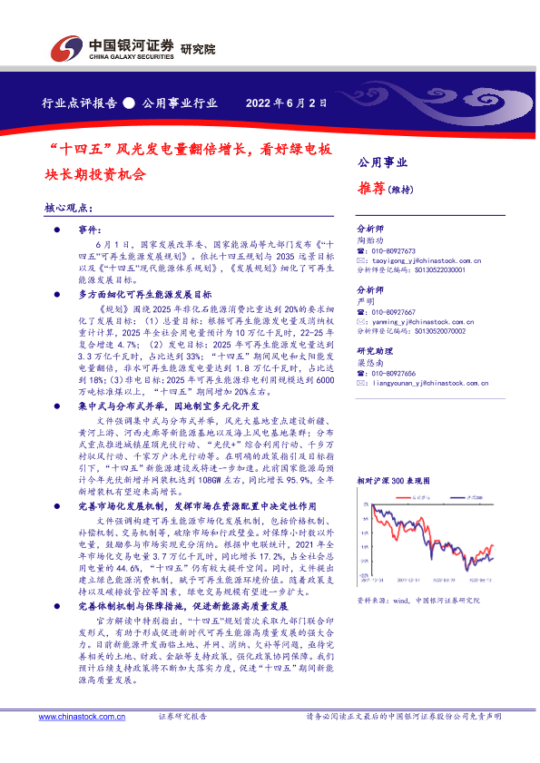 【银河证券】【20220602】‘十四五’风光发电量翻倍增长,看好绿电板块长期投资机会-3页