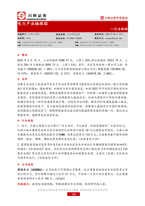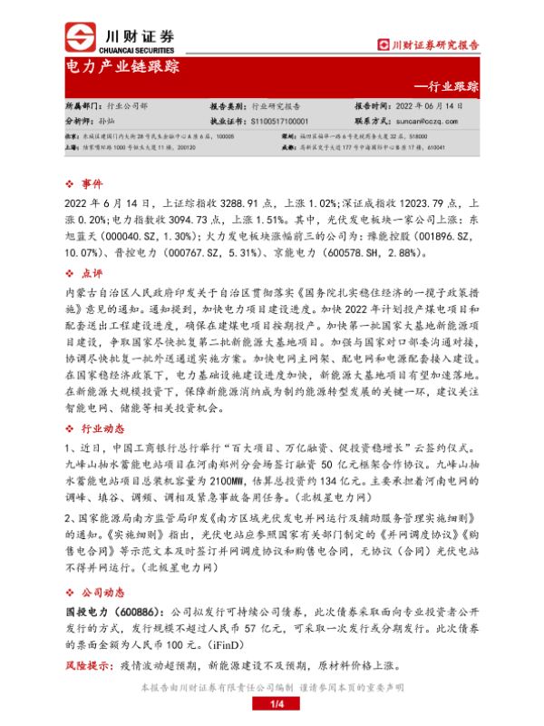 【川财证券】【20220614】电力产业链跟踪-4页