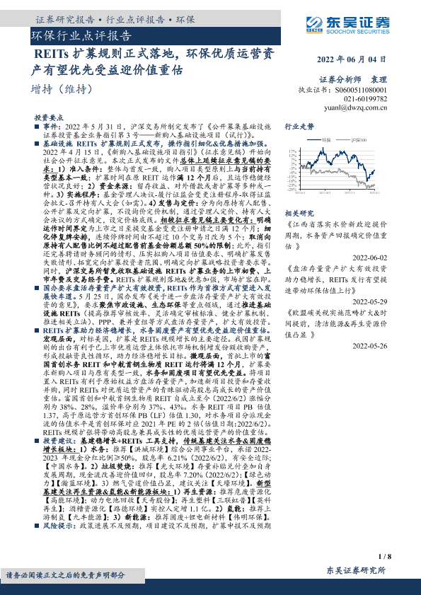 【东吴证券】【20220604】环保行业点评报告:REITs扩募规则正式落地,环保优质运营资产有望优先受益迎价值重估-8页