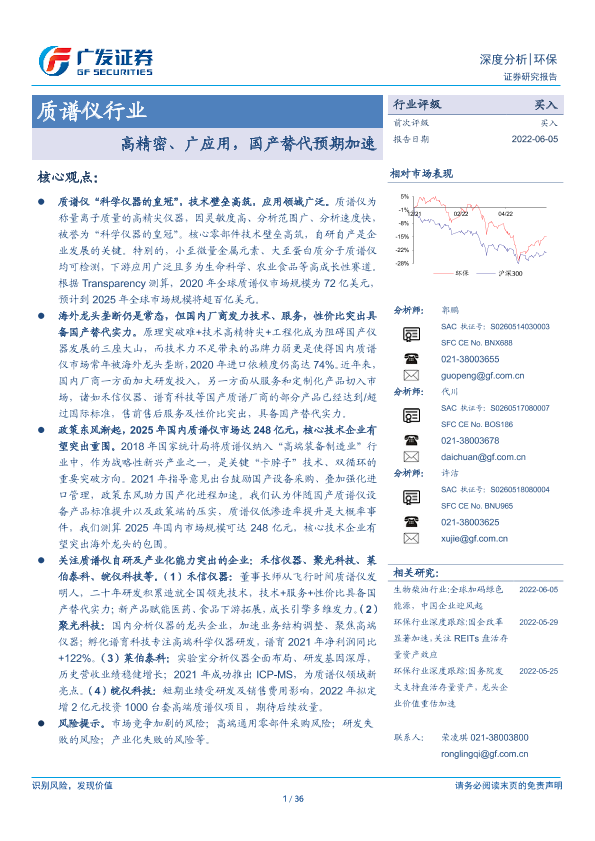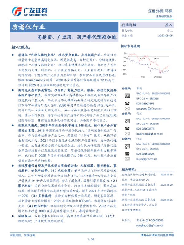 【广发证券】【20220605】环保深度分析:质谱仪行业-高精密、广应用,国产替代预期加速-36页