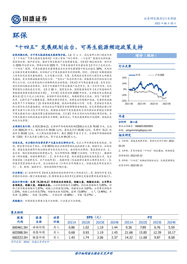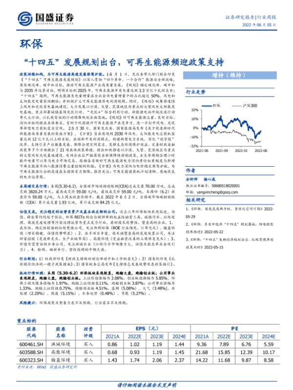 【国盛证券】【20220605】环保行业周报:“十四五”发展规划出台,可再生能源频迎政策支持-14页