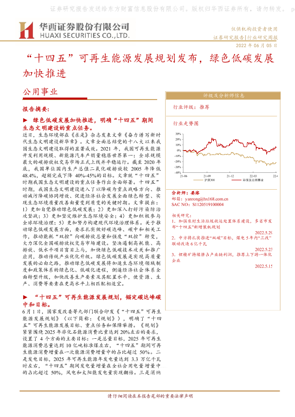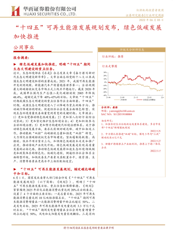 【华西证券】【20220605】十四五可再生能源发展规划发布,绿色低碳发展加快推进-21页