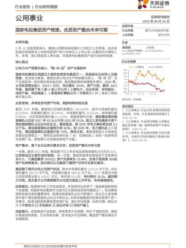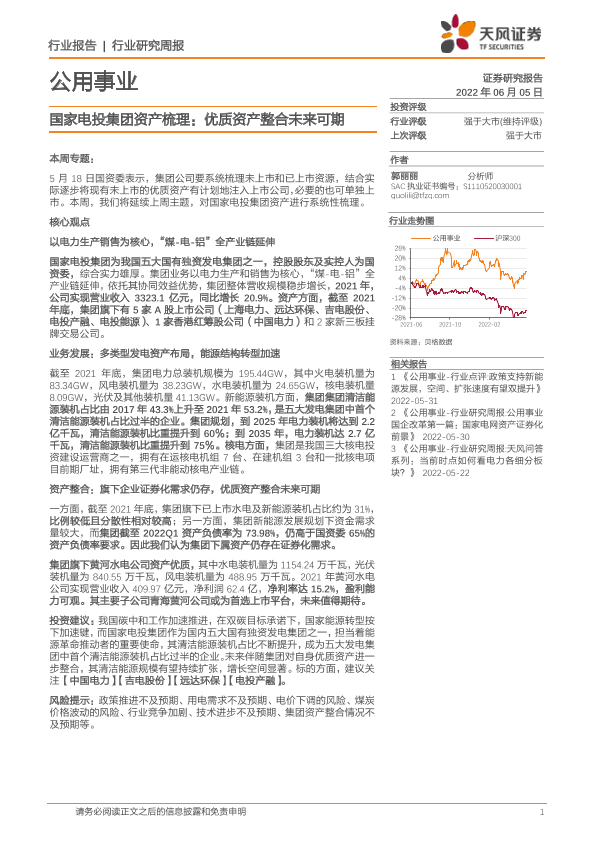 【天风证券】【20220605】公用事业行业研究周报:国家电投集团资产梳理:优质资产整合未来可期-16页