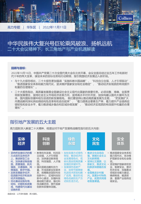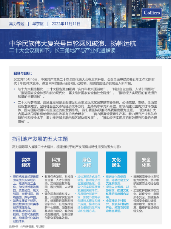 【高力国际】【20221111】中华民族伟大复兴号巨轮乘风破浪、扬帆远航二十大会议精神下,长三角地产与产业机遇解读-9页