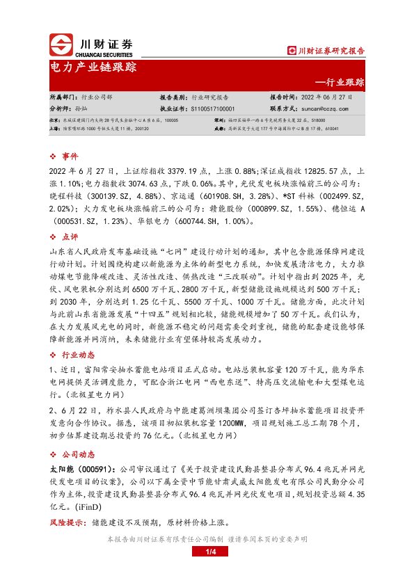 【川财证券】【20220627】电力产业链跟踪-4页